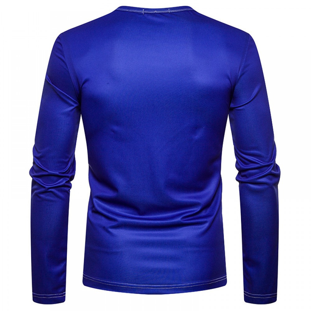 New Men's Plus Size 3D Irregular Printing High Neck Long Sleeve T-Shirt Bottoming Shirt