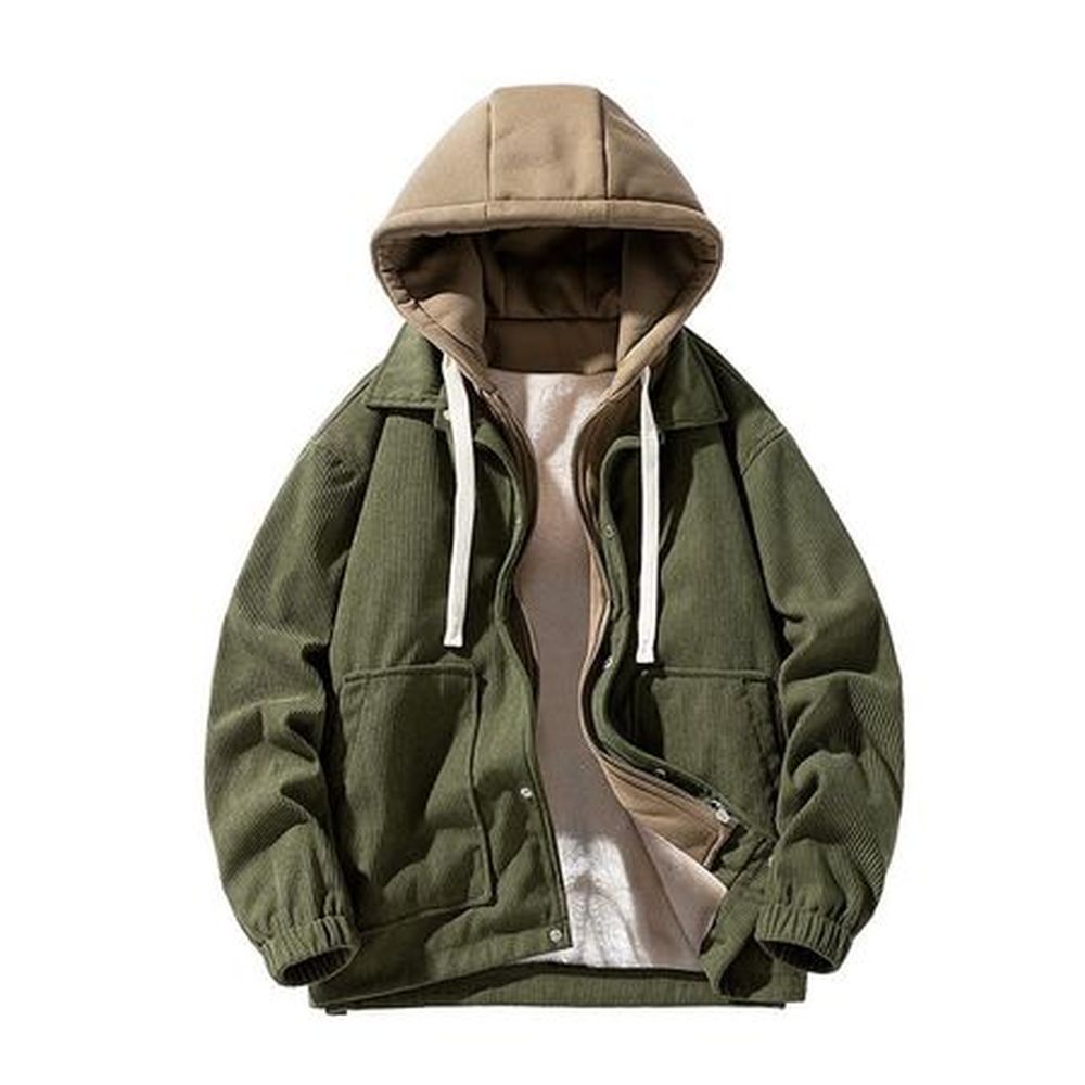 Men's Casual Lapel Corduroy Baseball Jacket Plus Velvet Thickened Jacket