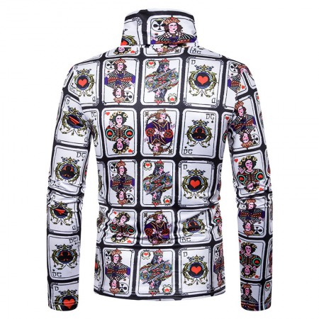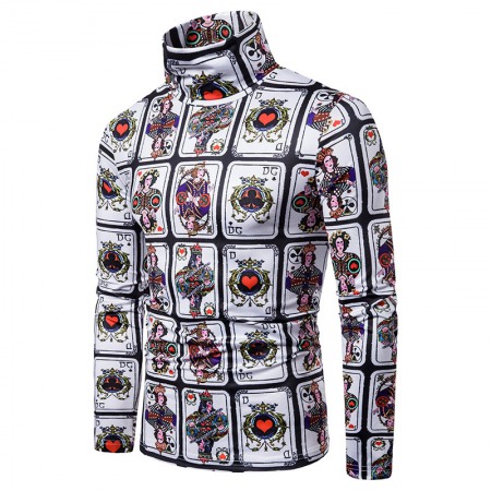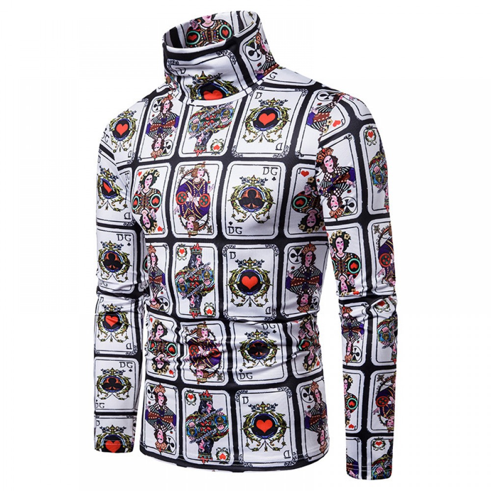 Men's Large Size 3D Nine Square Grid Playing Card Printing High Neck Long Sleeve T-Shirt Bottoming Shirt