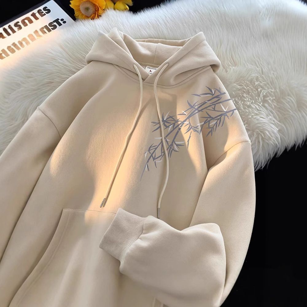 New Chinese Style Printed Hooded Sweatshirt for Men With Velvet