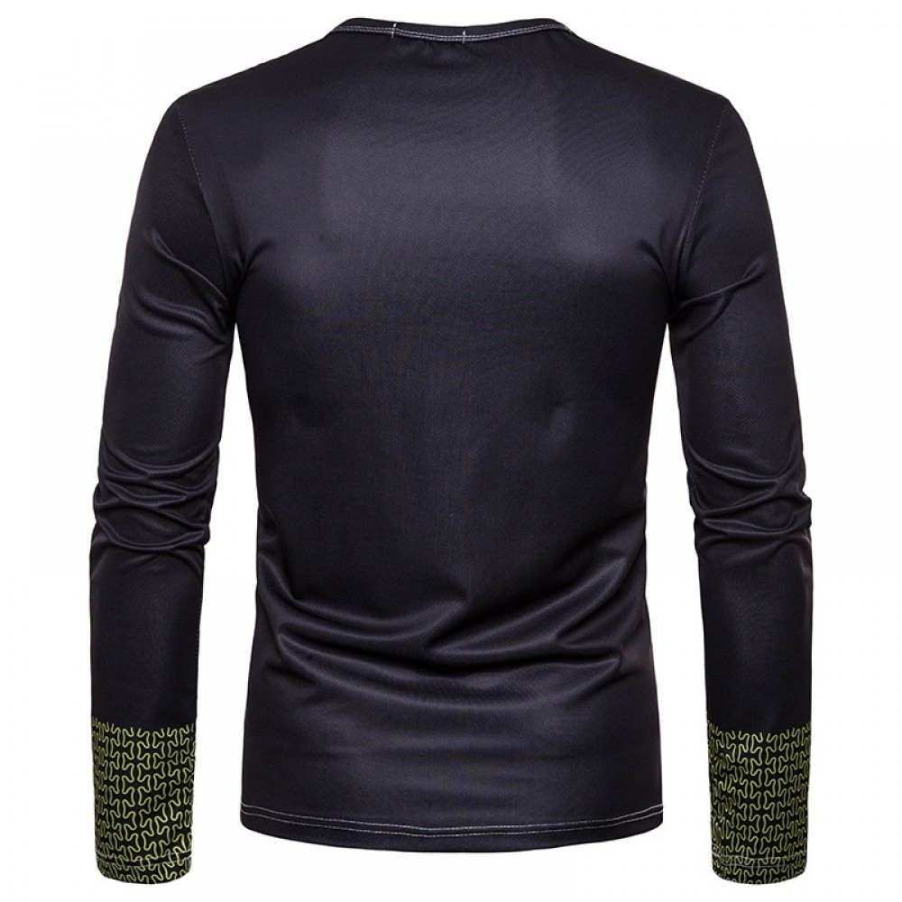 New Men's Fashion Totem 3D Digital Printing Round Neck Long Sleeve T-Shirt