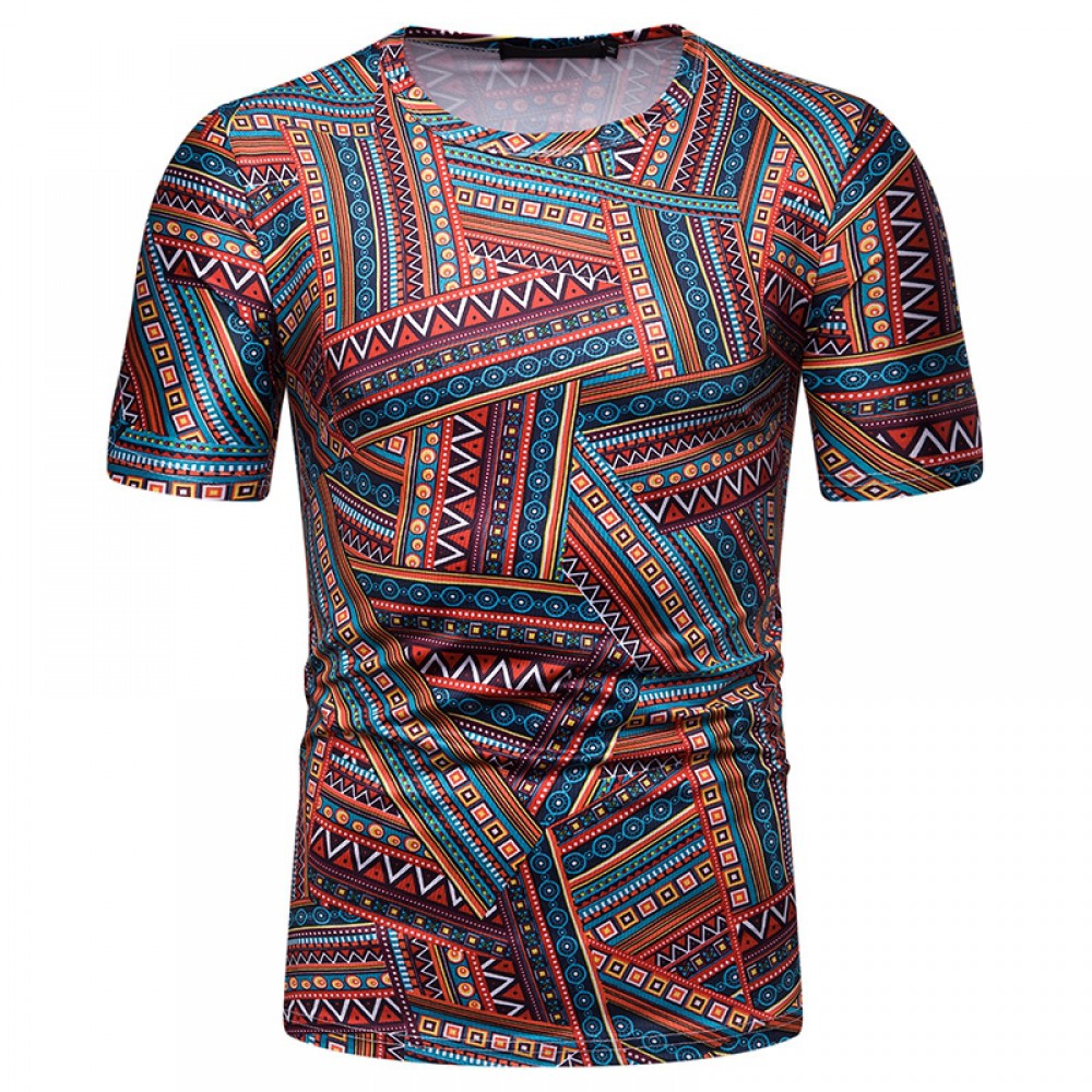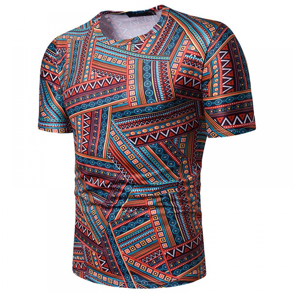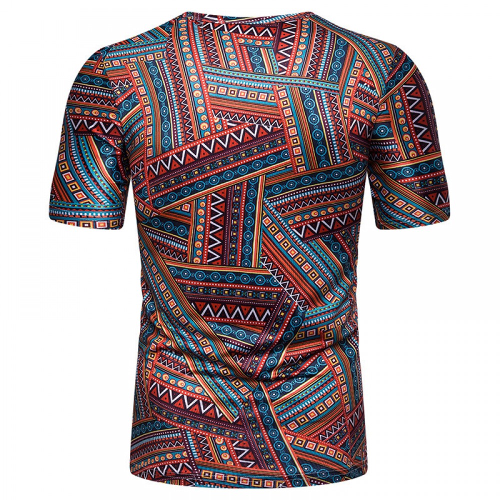 New Summer Men's Ethnic Style Printed Short-Sleeved T-Shirt