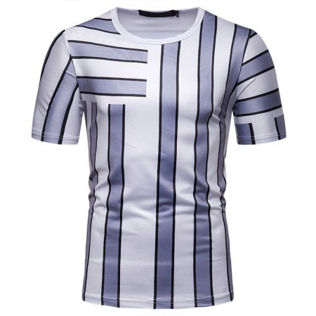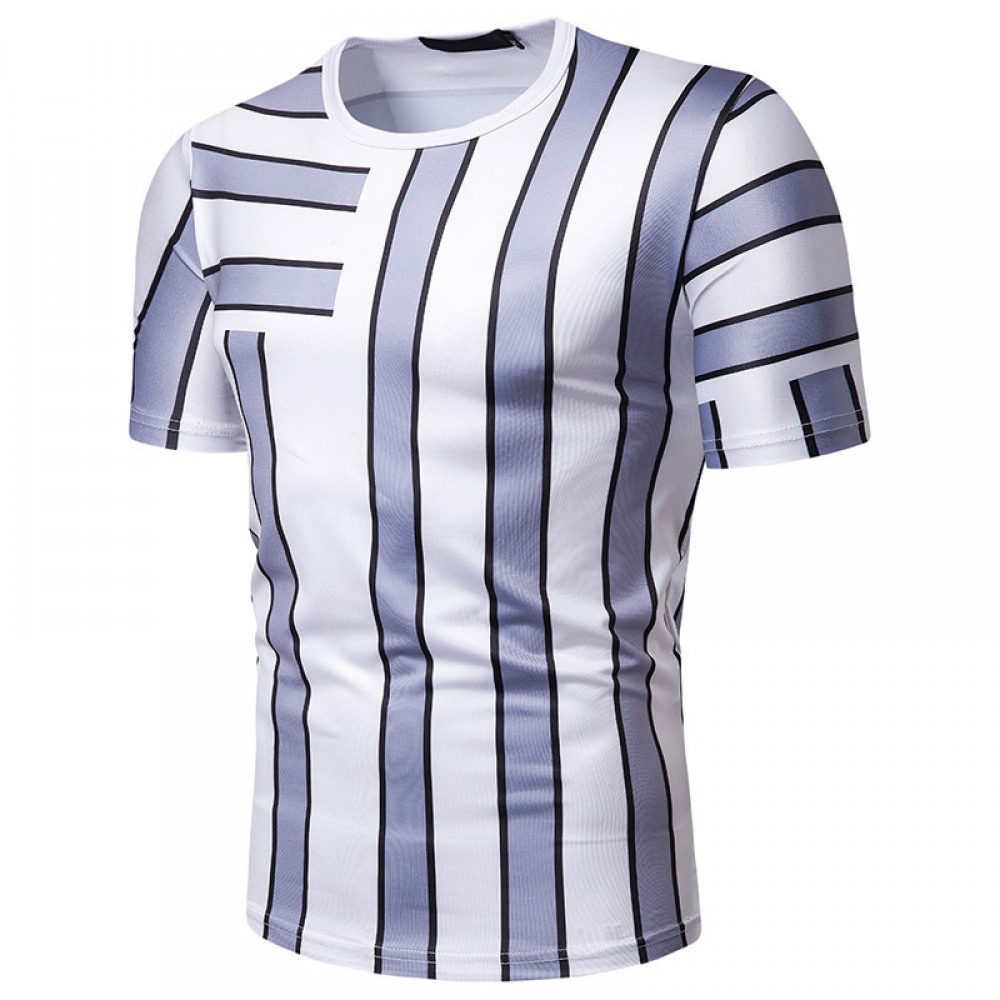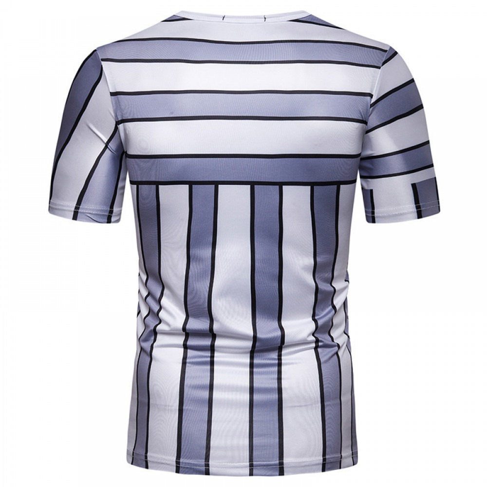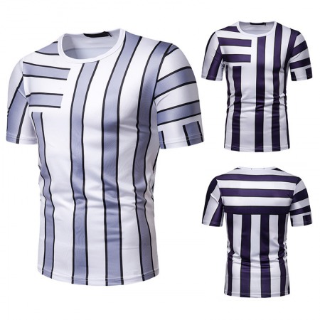 New Summer Men's Short-Sleeved T-Shirt Mens Contrast Striped Slim Casual T-Shirt