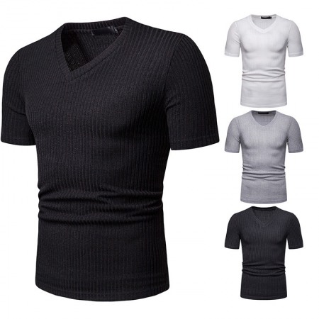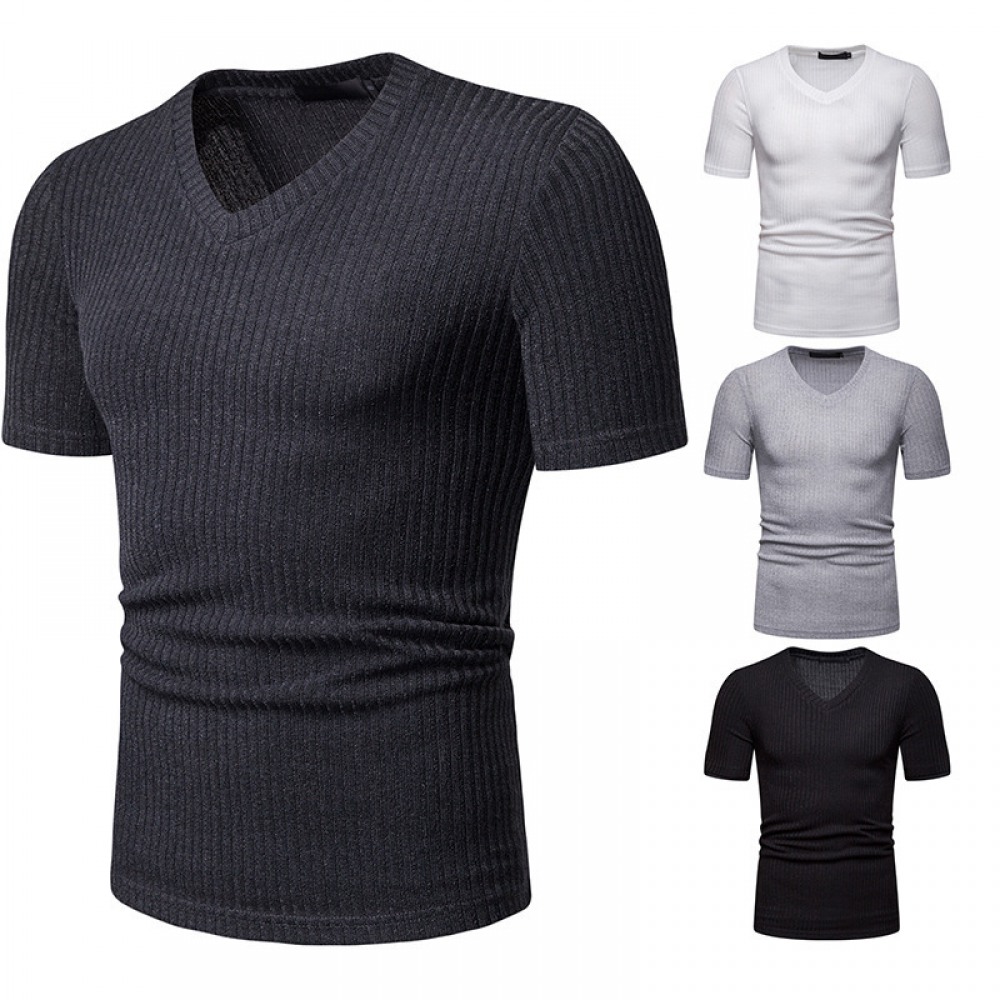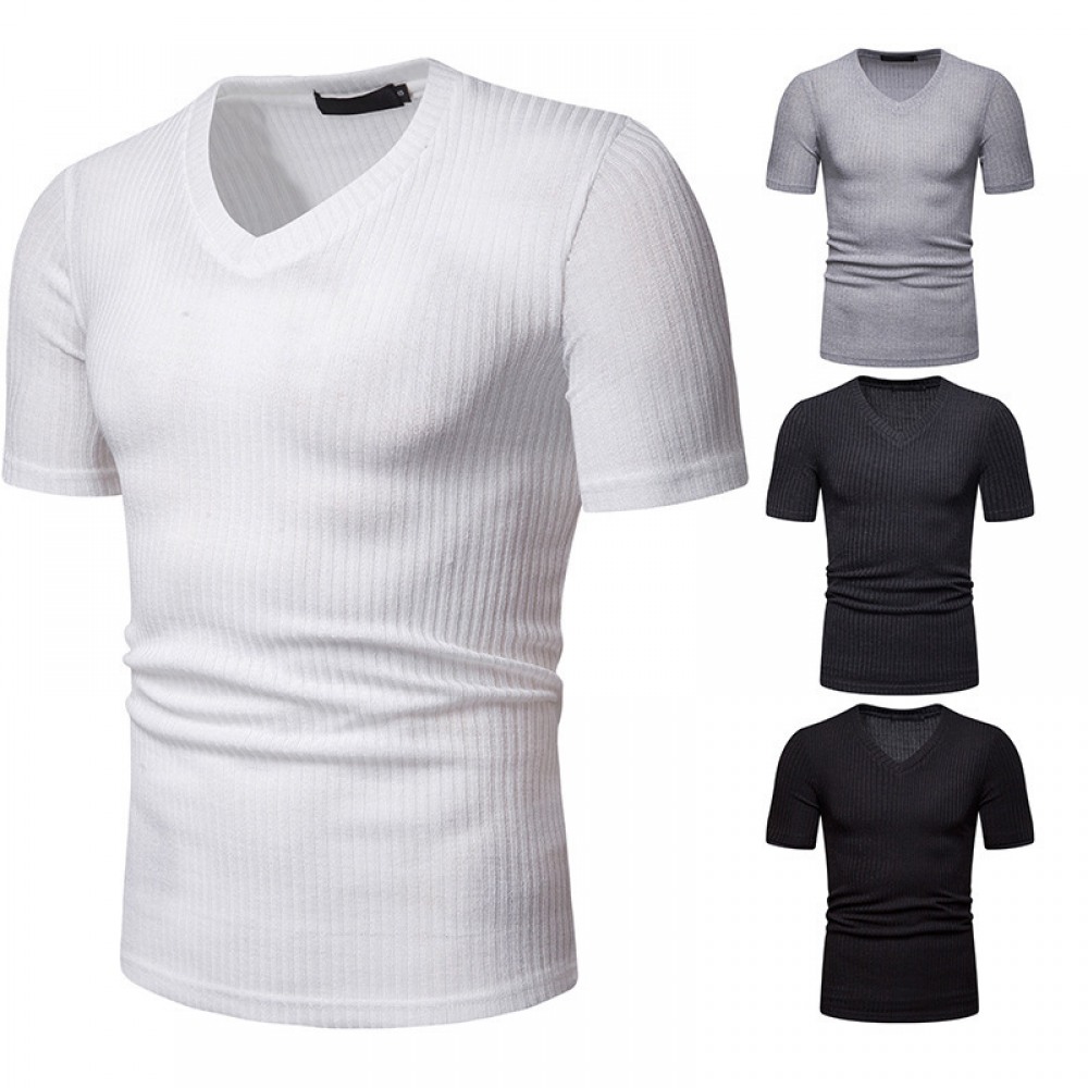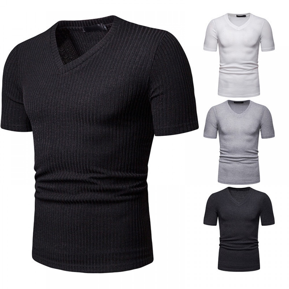 New Summer Thin High Stretch Men's V Short Sleeve T-Shirt