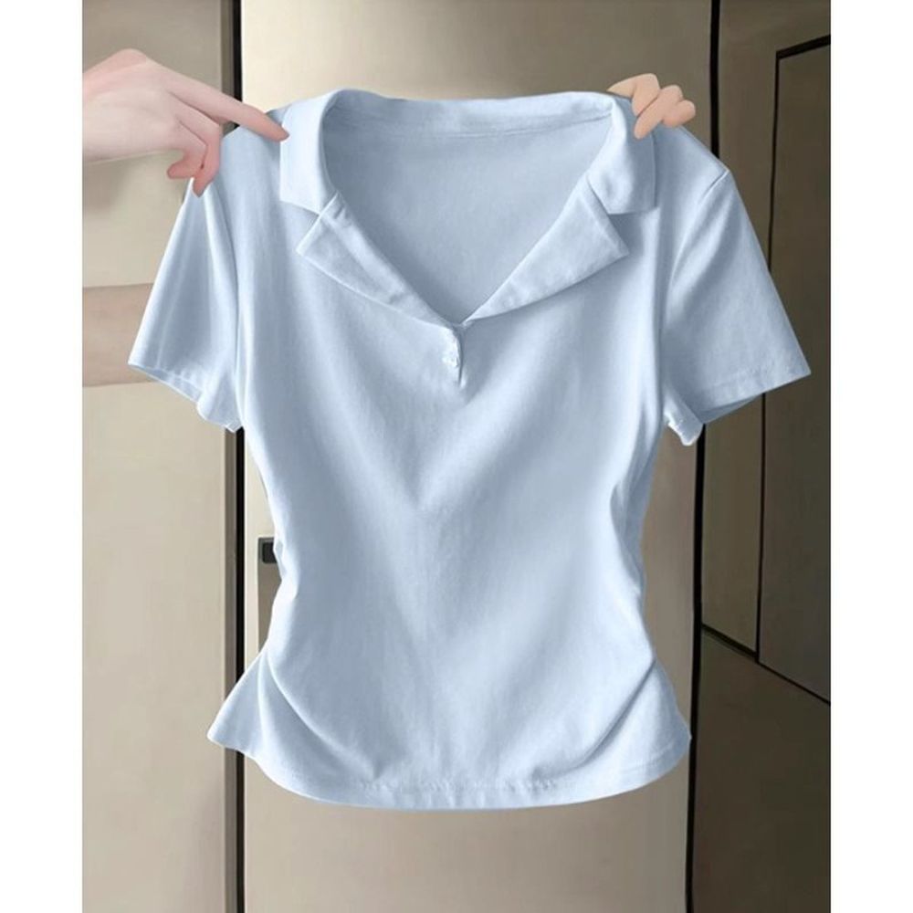 Summer New Style Cotton and Linen Short-Sleeved Shirt Hot Style Bundle Fold Mid-Sleeved T-Shirt Women
