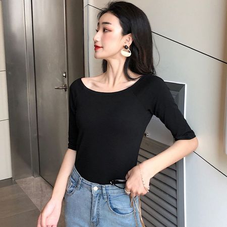 Summer New Style Cotton and Linen Short-Sleeved Shirt Hot Style Bundle Fold Mid-Sleeved T-Shirt Women